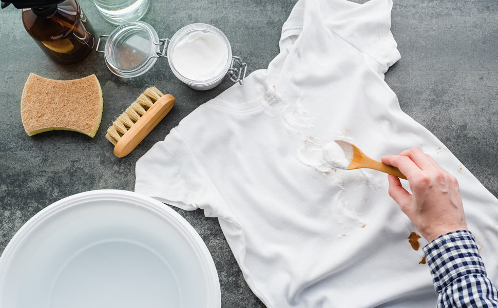 Détachant textile : Appliquez directement un peu de bicarbonate sur les taches tenaces de vos textiles. Laissez agir quelques minutes avant de laver pour un nettoyage en profondeur qui respecte les fibres et les couleurs.