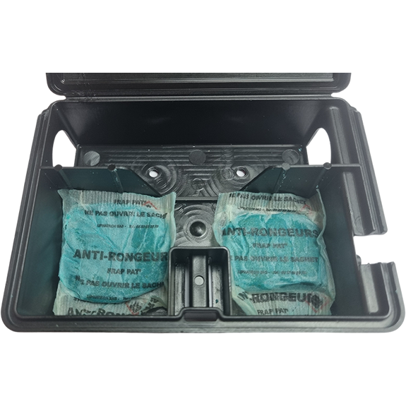 Postes sécurisés pour appât souris équipé d'un système d'ouverture rapide à clef. Accepte tous supports : pâtes céréales, et blocs (jusqu'à 33gr). Dimensions: L : 130 mm / P : 90 mm / H : 40 mm Lot de 36 postes sans appât - Avec 6 clés