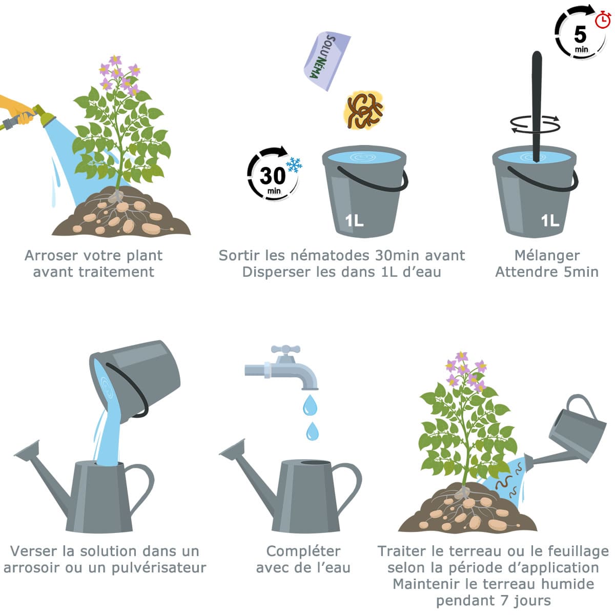 Il est important de suivre les instructions d'application pour obtenir les meilleurs résultats dans le traitement des doryphores avec les nématodes Steinernema Carpocapsae.