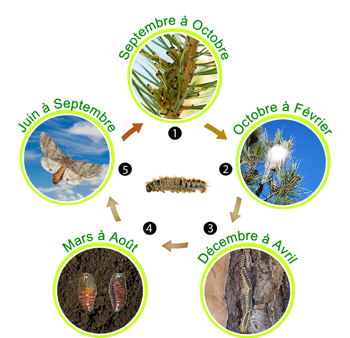 Après les fortes attaques de ces dernières années, il est conseillé dans un premier temps de surveiller les pin régulièrement et de détruire les cocons d’hivernages présents sur les pin. Ensuite il faut mettre en place du piégeage pour détecter les premiers vols du papillon.
